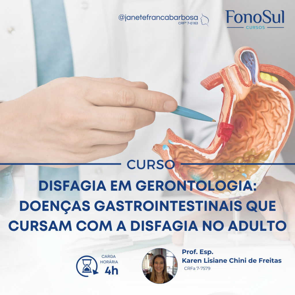 Objetivo geral Determinar raciocínio na fisiopatologia quanto às doenças gastrointestinais relacionadas ao atendimento fonoaudiológico e fonoterapia. Conteúdo programático – Doenças gastrointestinais relacionadas com disfagia do adulto;– Fisiopatologia das doenças gastrointestinais;– Fatores de risco de disfagia nas doenças gastrointestinais;– Atuação fonoaudiológica associada ao uso de via alternativa (SNE,SNG, GTT, JTT e NPT);– Tomada de decisão para […]