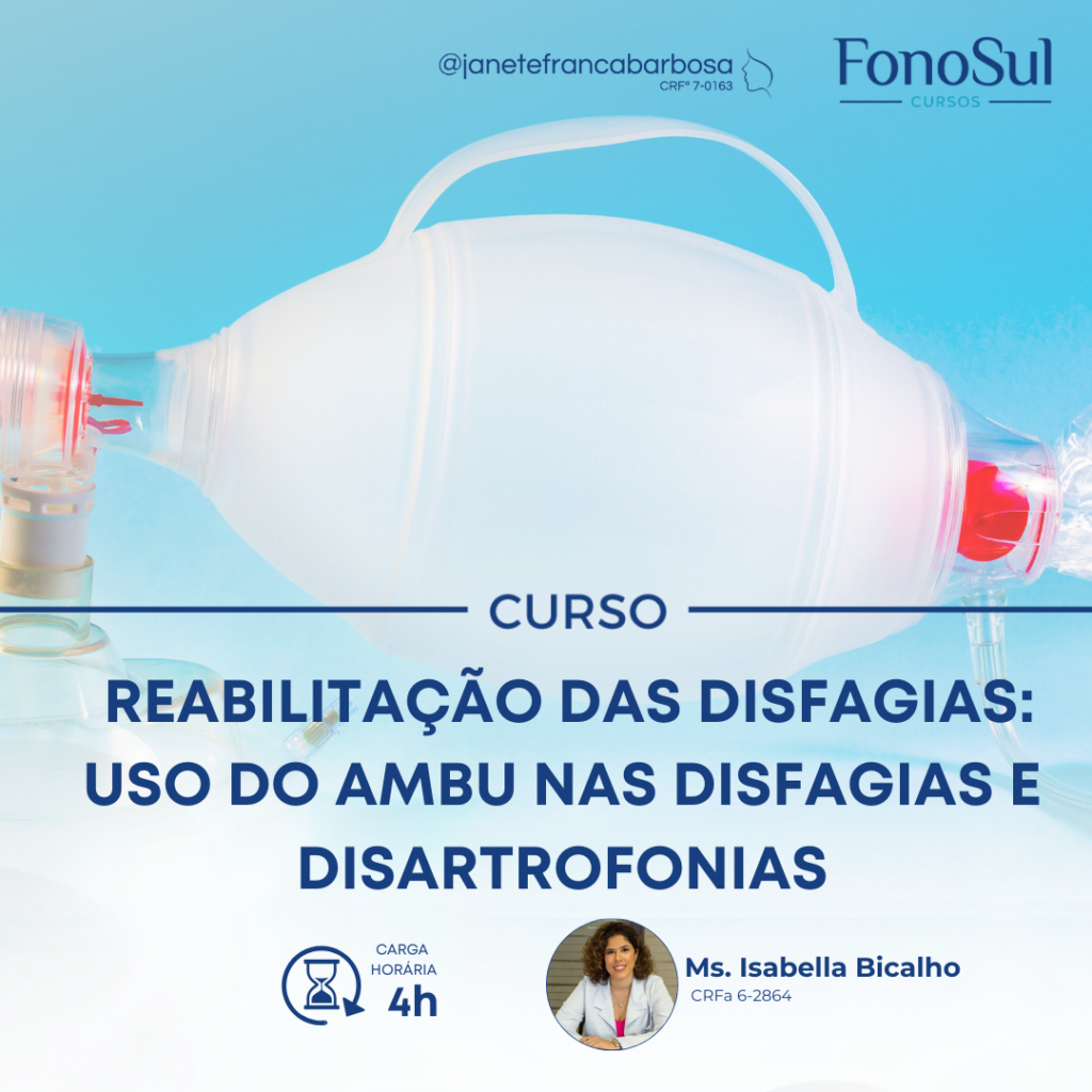 Objetivo geral Capacitar o fonoaudiólogo a utilizar o Ambu (ressuscitador manual) como recurso terapêutico nas disfagias e disartrofonias, compreendendo seus efeitos respiratórios, vocais e neuromusculares para potencializar a reabilitação funcional e com segurança. Conteúdo programático – Modelos; – Indicação e contraindicação; – Recrutamento do volume pulmonar; – Uso em pacientes com e sem fechamento gótico; […]